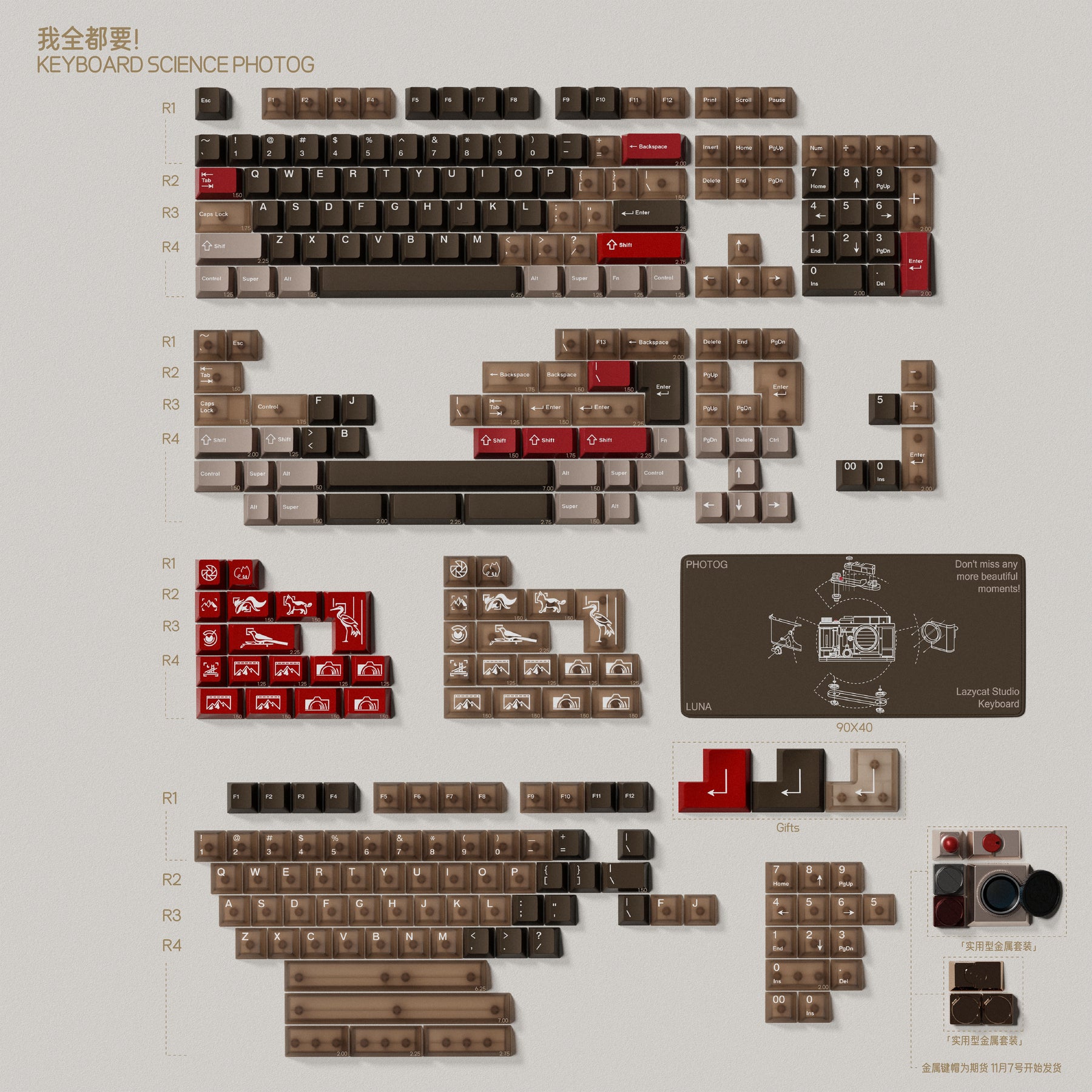 “Un po’ di più: Photographer R1 è stato il mio secondo design da quando sono entrato nel settore. Dopo la fine delle vendite di R1, ho sempre avuto la sensazione che il design e la lavorazione di R1 non fossero perfetti. Nell’anno successivo, ho spesso riflettuto su come poter presentare al meglio questo design sui keycap. Dopo così tanto tempo di sedimentazione, ho trovato il modo perfetto per interpretarlo e la lavorazione artigianale che meglio si adatta. Credo di aver consegnato ora un risultato perfetto. Vi invito a godervi la mia nuova opera – Keyboard Science PhotoG Photographer R2."
