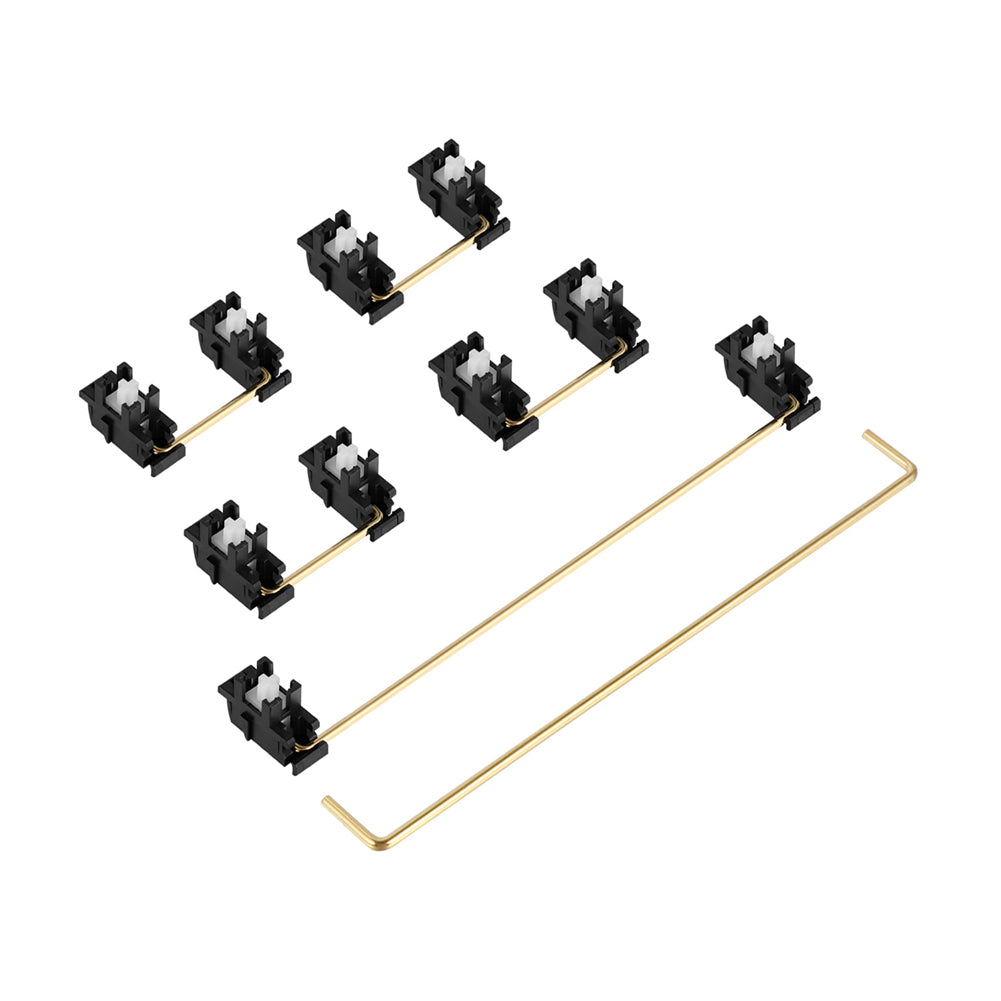 Durock Plate Mount Stabilizers utilizes Durock quality stabs in plate mount form. Features: Stainless Steel Wire Plate Mount Cherry MX Nylon Housing Color: Black Set includes: 4 * 2U + 1 * 6.25U