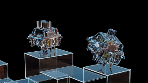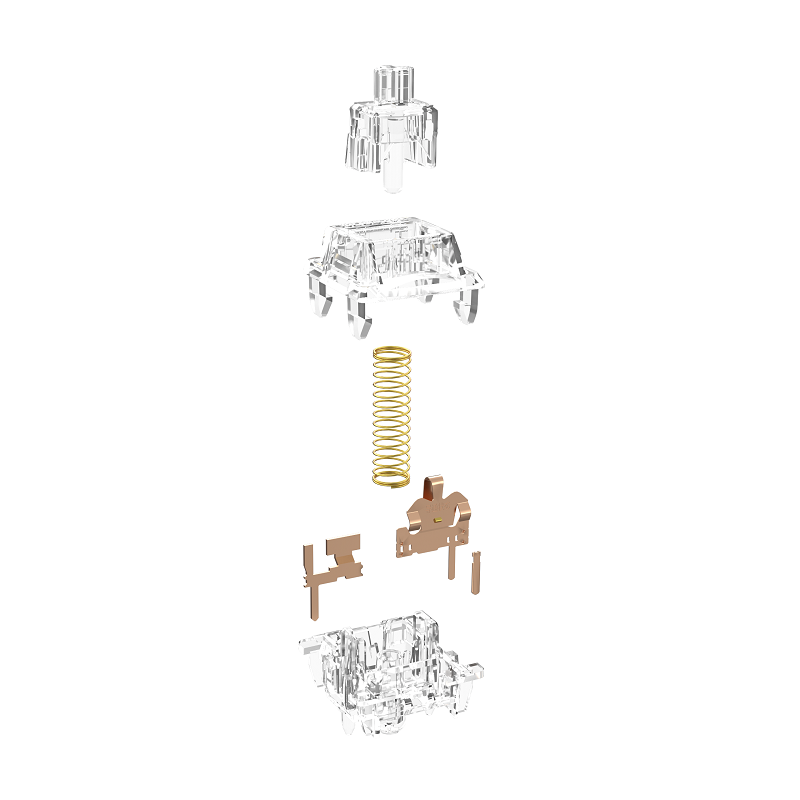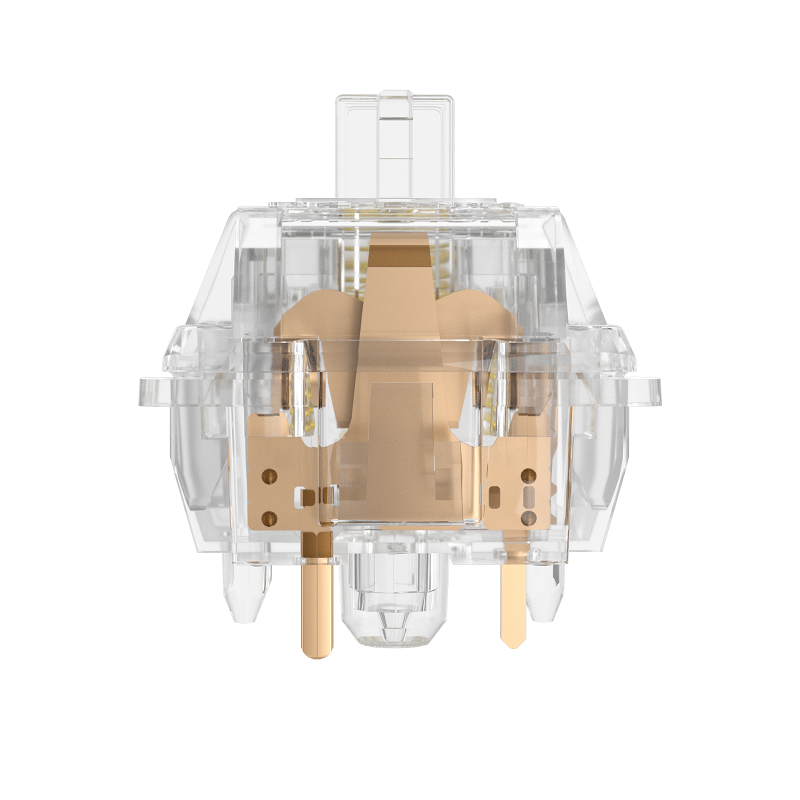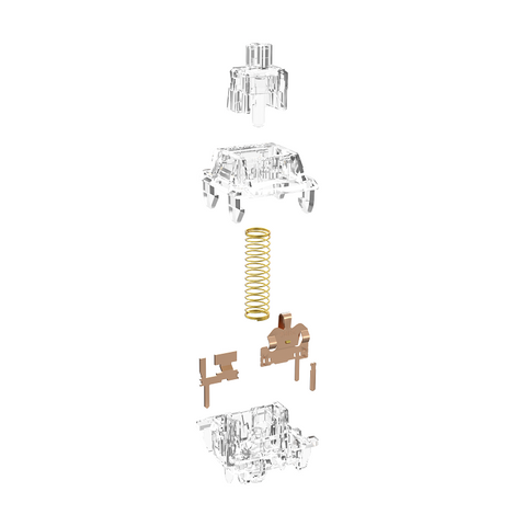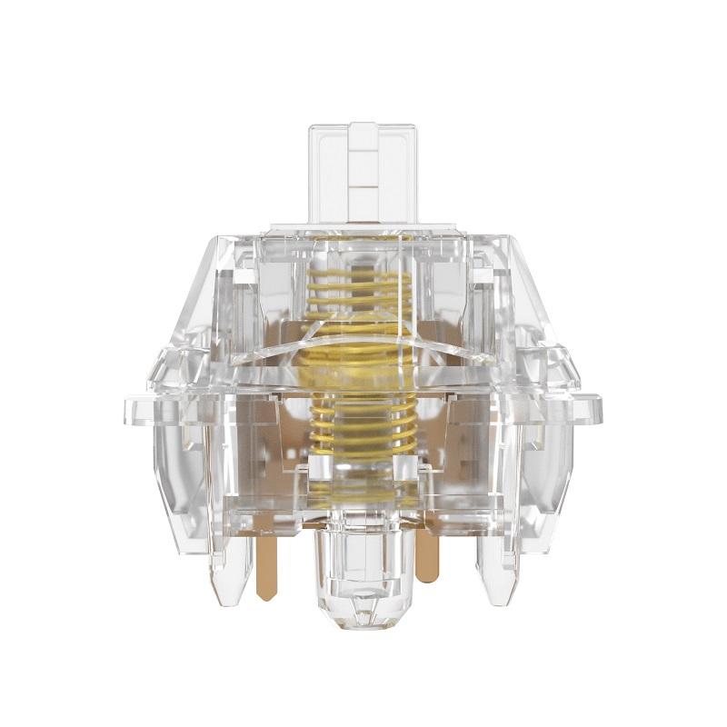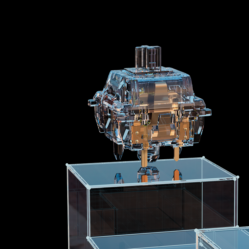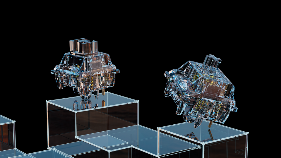 Gateron North Pole sono switch lineari completamente trasparenti con alloggiamento superiore e inferiore in policarbonato e un materiale unico per lo stem che utilizza il materiale dell'alloggiamento ink v2.