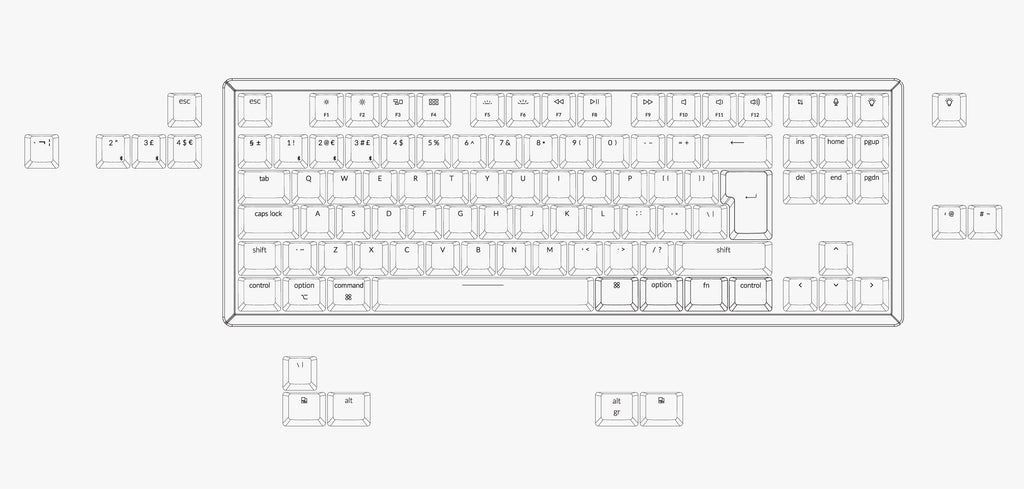 La tastiera meccanica wireless Keychron K8 Tenkeyless ha inclusi i keycaps per entrambi i sistemi operativi Windows e Mac.