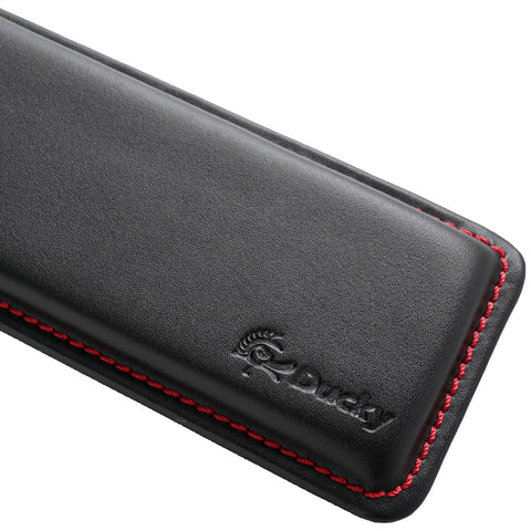 Il "Poggiapolsi" è costituito da una comoda imbottitura alta circa 2,5 cm, circondata da vera pelle nera di alta qualità. Le cuciture rosse forniscono un accento visivo. Il mini poggiapolsi di Ducky assicura il massimo comfort alla scrivania.